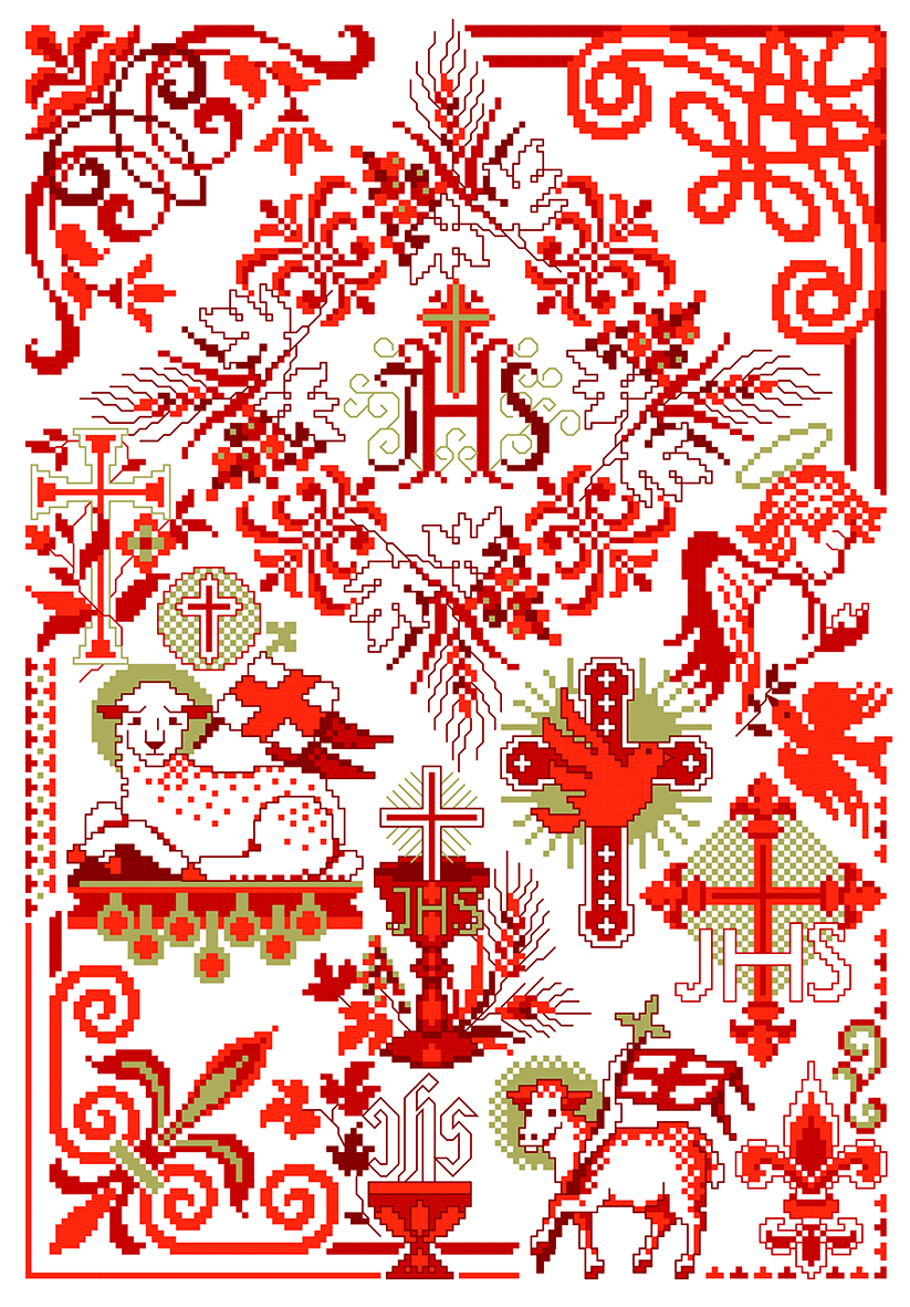 Stickvorlage Weihkorbdeckchen Lindners Kreuzstiche